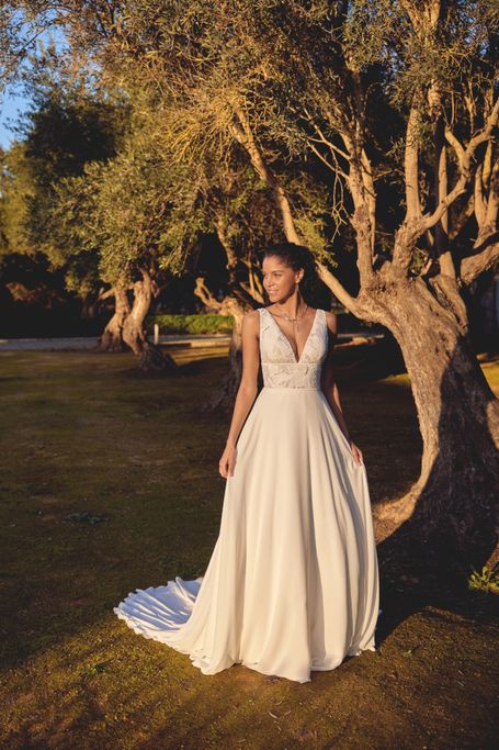 Die Kollektionen, die von professionellen Designern kreiert wurden sind inspiriert durch die Schönheit der Natur. Le Rina hat moderne, leichte Kleider aus angenehmen Stoffen und tollen Spitzenapplikationen. Hinter der Marke steht ein Familienunternehmen, dass mit ganz viel Herzblut bei der Sache ist! Das merkt man z. B. dadurch, dass viele Änderungswünsche umgesetzt werden können und fast jedes Kleid auch in einem Schwangerschaftsschnitt bestellt werden kann.
