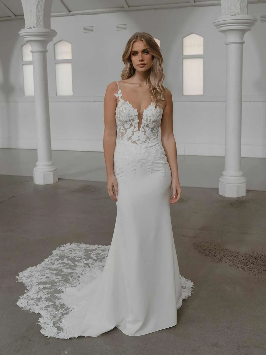 Evie Young ist die neue Marke von Madi Lane und ein Label für moderne Brautkleider, die Individualität und Weiblichkeit verkörpern. Die besonderen Kleider werden aus weichen Stoffen und hochwertigen Spitzen gefertigt, wodurch sie sehr bequem und von hoher Qualität sind.